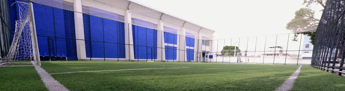 Campo de Futebol Society com gramado sintético que comporta dois times de 07 jogadores (06 de linha e o goleiro). Toda segurança e estrutura de arquibancada coberta para até 200 pessoas, vestiários, estacionamento privativo, bebedouros e refletores para realização de partidas no turno da noite.BENEF..